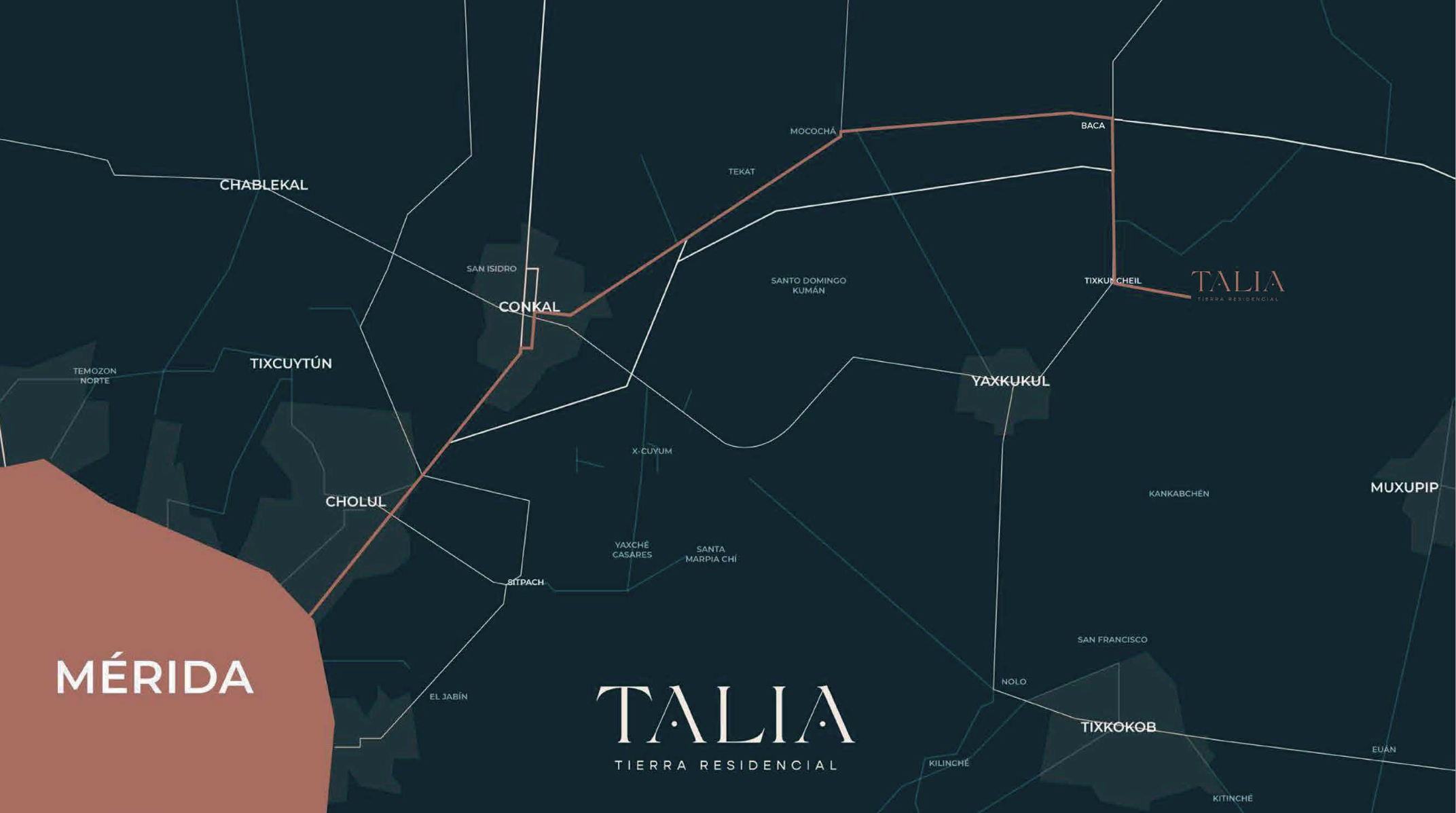 Bienvenido a TALIA, un desarrollo residencial ubicado en la localidad de Tixkuncheil, Baca, Yucatán, en una zona estratégica de alto crecimiento urbano.