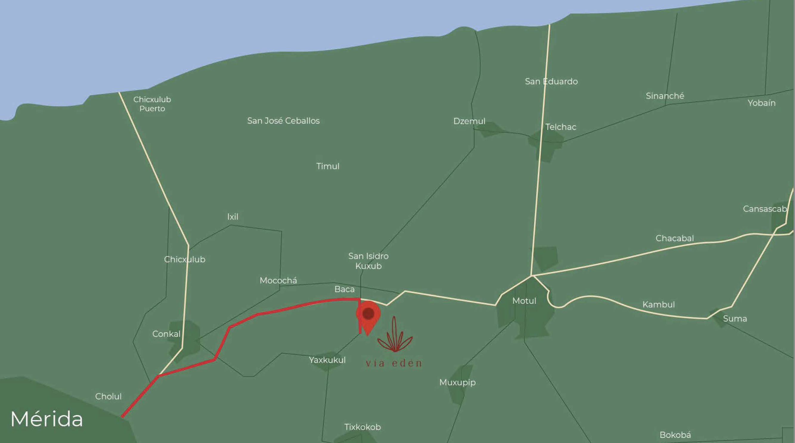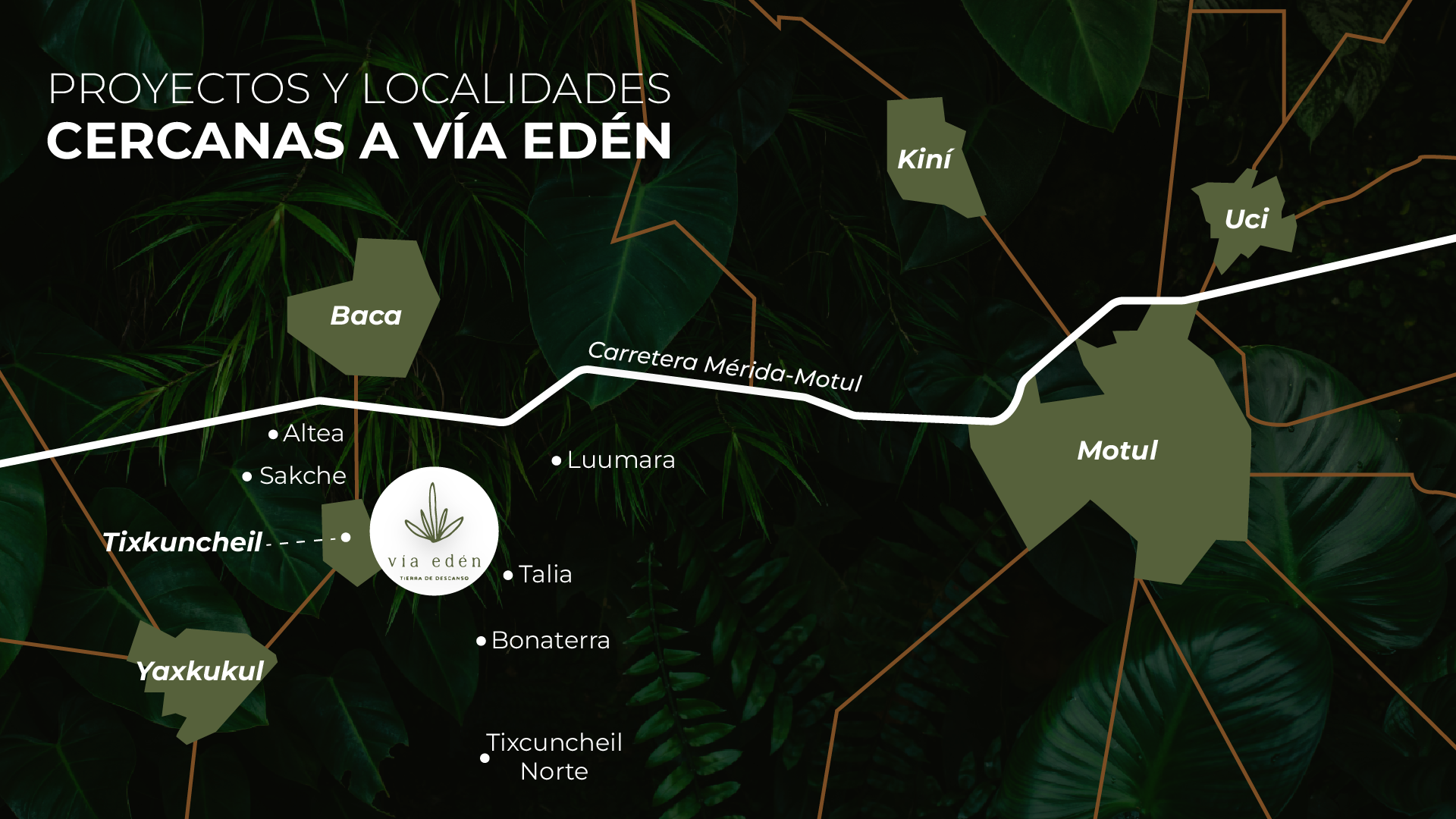 Vía Edén es un desarrollo residencial ubicado en Tixkuncheil, una localidad del municipio de Baca, Yucatán, a tan solo 18 minutos del anillo periférico norte de Mérida.