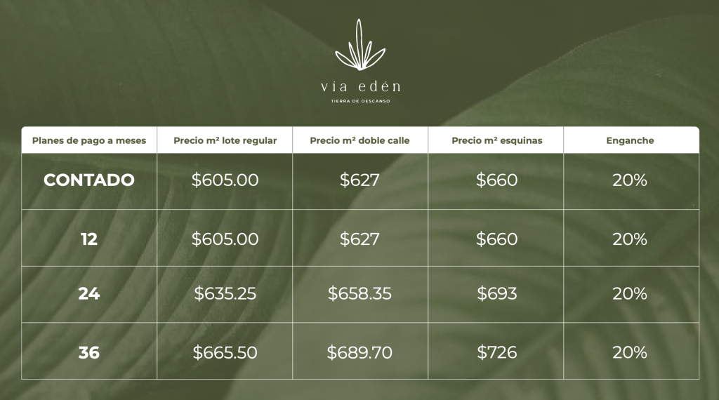 Precios sujetos a cambios. El precio final será el pactado directamente con el asesor al momento de elegir el lote de su preferencia.